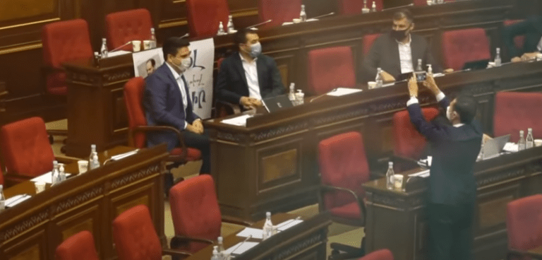 ՏԵՍԱՆՅՈՒԹ. Ալեն Սիմոնյանն ո՞վ ա, որ մեզ թույլ չտա. ԼՀԿ–ին թույլ չեն տալիս պաստառով մտնել ԱԺ դահլիճ 16.09.2020