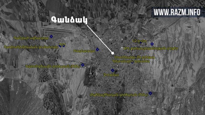 Razm. info-ն ներկայացնում է Գանձակի առավել կարևոր ռազմական օբյեկտների տեղը քաղաքի արբանյակային լուսանկարի վրա 17.10.2020
