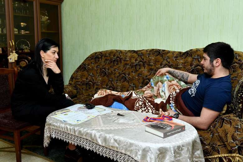 ՖՈՏՈ. Աննա Հակոբյանը Գյումրիում այցելել է պատերազմում վիրավորում ստացած ժամկետային զինծառայողին 12.03.2021