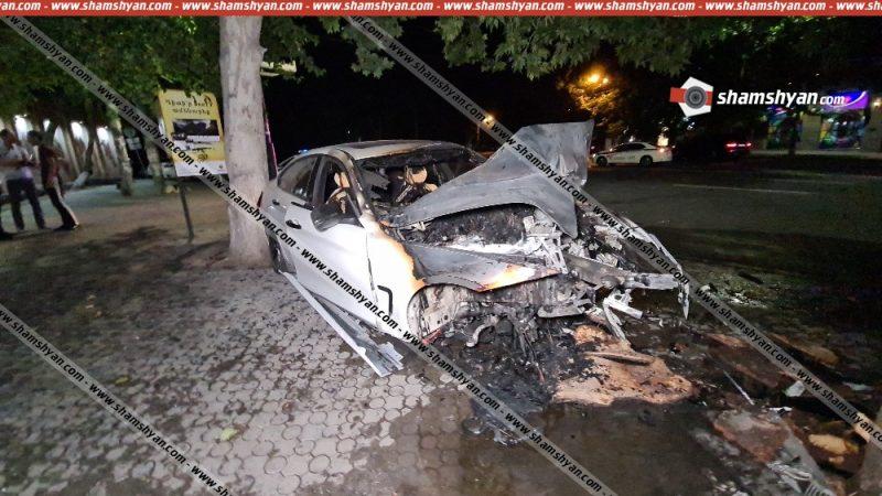 Խոշոր ավտովթար-հրդեհ Երևանում. BMW-ն բախվել է բազալտե եզրաքարին, հայտնվել մայթին ու բախվել ծառին. վարորդին հիվանդանոց են տեղափոխել 2 երիտասարդ տղաներ 30.05.2021