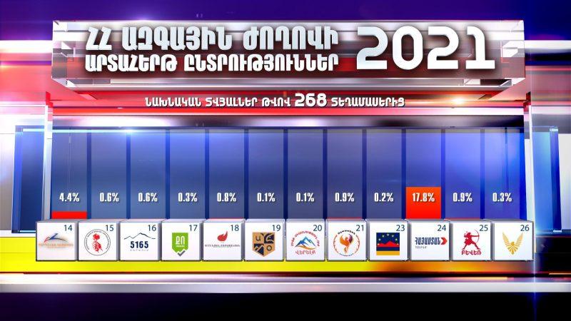 Ժամը 17:30-ի դրությամբ՝ քվեարկած և հարցմանը մասնակցած 1861 քաղաքացիների 27%-ը իր ձայնը տվել է «Բարգավաճ Հայաստան» կուսակցությանը. «Բիզնես-Դիալոգ» 20.06.2021