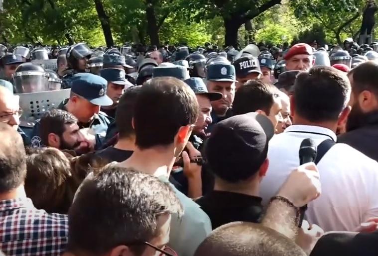 ՏԵՍԱՆՅՈՒԹ. Էդ դուբինկեն պահել ես, որ խփե՞ս արա՛, դե արի՛․․․ իրարանցում ԱԺ մոտ՝ ոստիկանների ու ցուցարարների միջև 04.05.2022