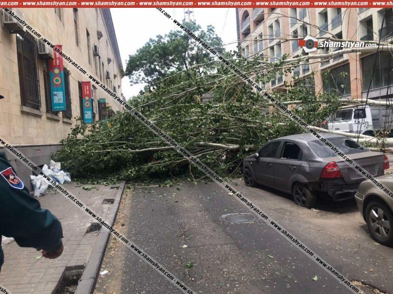 ՖՈՏՈ. Արտակարգ դեպք՝ Երևանում. հաստաբուն բարդին արմատից պոկվել և տապալվել է՝ վնասելով մի քանի ավտոմեքենաներ 23.05.2022