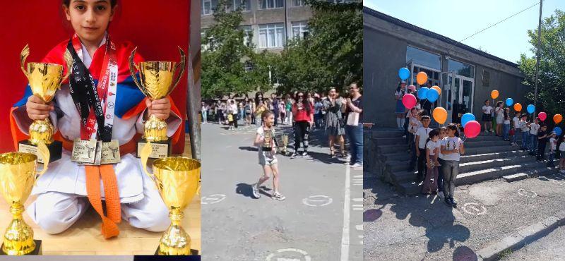 ՏԵՍԱՆՅՈՒԹ. Աշխարհի քառակի գավաթակիր չեմպիոնին՝ 8-ամյա Սյուզաննային հարազատ կրթօջախում դիմավորեցին մեծ շուքով 01.06.2022