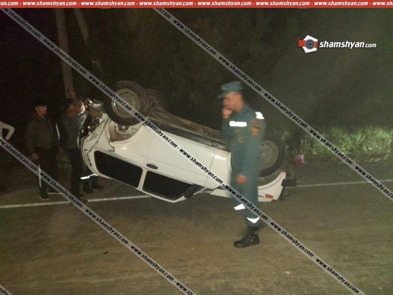 ՖՈՏՈ. Ավտովթա. 24-ամյա վարորդը ՎԱԶ 2121-ով «Գետափ» ռեստորանի հարևանությամբ գլխիվայր շրջվել է, կան վիրավորներ 24.07.2022