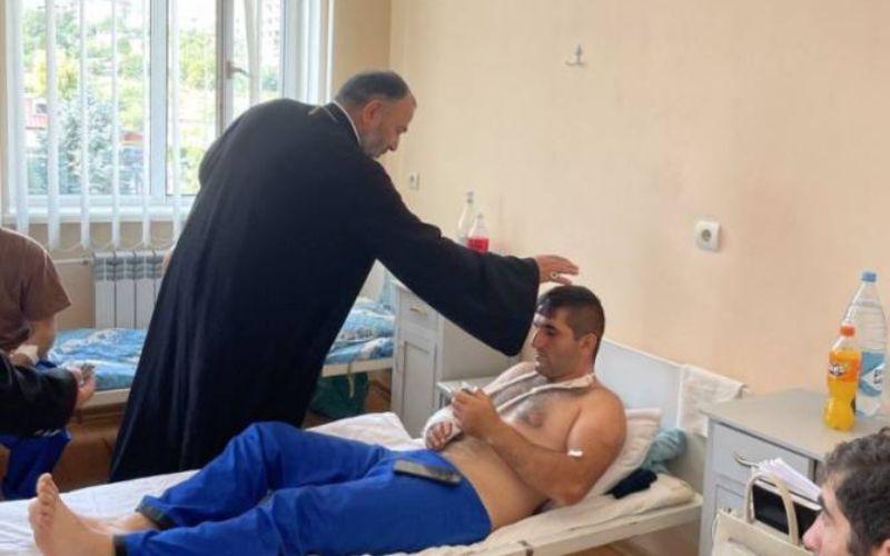 ՖՈՏՈ. Արցախի թեմի առաջնորդը Ստեփանակերտի կենտրոնական հոսպիտալում տեսակցել է վիրավոր զիծառայողներին 04.08.2022
