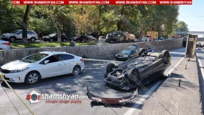 Խոշոր ավտովթար՝ Երևանում. «Լամբադա» կամրջի տակ բախվել են Kia-ն ու 2 Opel-ներ, որոնցից մեկը գլխիվայր շրջվել է 31.08.2022