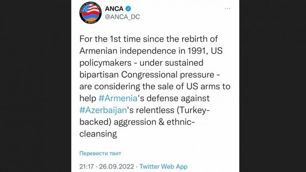 ԱՄՆ-ում 1991-ից ի վեր առաջին անգամ քննարկում են Հայաստանին զենք վաճառելու հարցը. Հայ դատի հանձնախումբ 27.09.2022