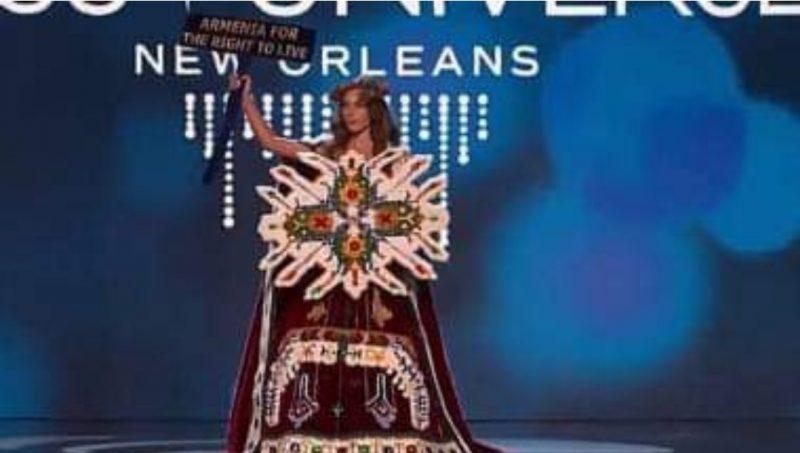 Հայաստանը ներկայացնող գեղեցկուհին բեմ է դուրս եկել ՝ «Հայաստանն իրավունք ունի ապրելու» գրությամբ 14.01.2023