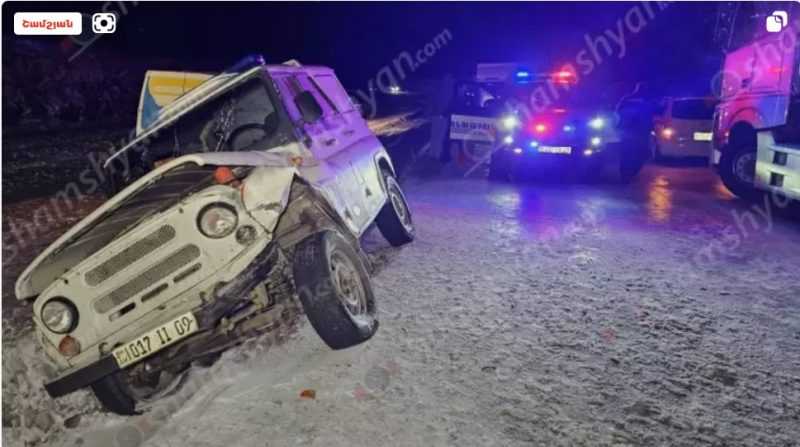 Ճանապարհի մերկասառույցի պատճառով Արագածոտնի մարզում բախվել են կալանավոր տեղափոխող ոստիկանական Виллис-ը, Nissan-ը, թուրքական համարանիշներով բեռնատար Mercedes-ն ու մեկ այլ Mercedes 23.01.2024