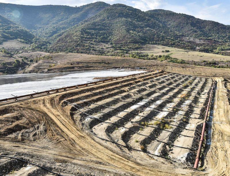 Из производственного цеха мы направляемся к хвостохранилищу, где он рассказывает, какая огромная работа проводится по укреплению плотины, фильтрации там использованных вод и их повторному использованию. «Вы видите синюю часть, там минеральные породы уже осели, вода очистилась, а это значит, что ее можно перекачать обратно на завод и использовать. Мы делаем все возможное, чтобы забирать как можно меньше воды из Дебеда, у нас замкнутая цепочка водопользования, единственная потеря воды происходит в виде испарения, потому что вся вода, используемая на заводе, в конечном итоге течет сюда – к хвостохранилищу, а отсюда – снова на завод, — объясняет Владимир Иванович.