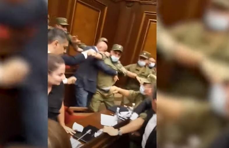 В перерыве в Национальном собрании между оппозиционными и властными депутатами началась драка. Депутаты били друг друга даже стульями.
