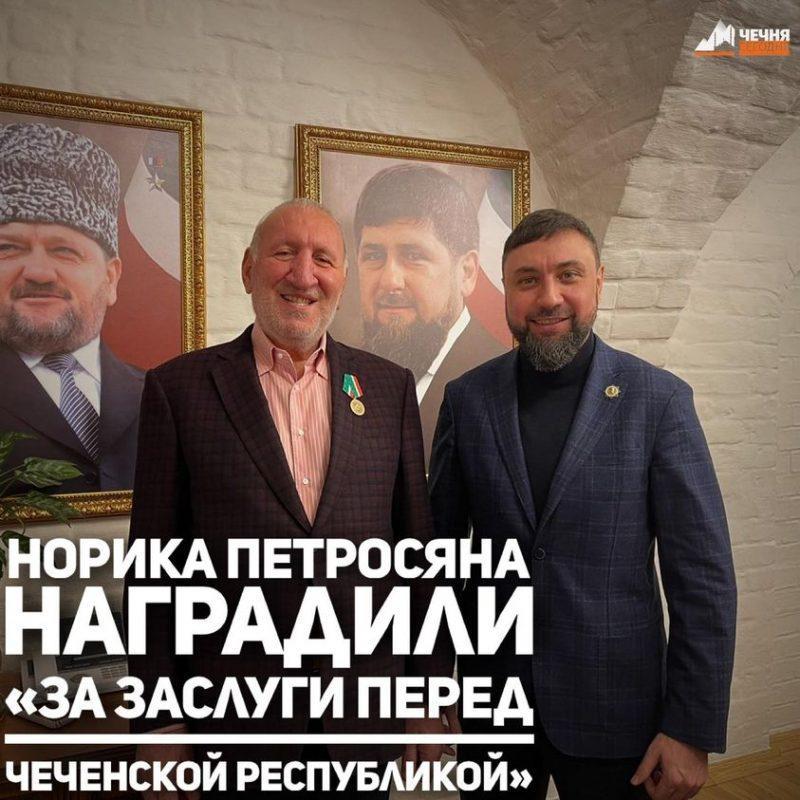 «За плодотворное сотрудничество и вклад в развитие молодежных инициатив, наградить медалью «За заслуги перед Чеченской Республикой» Петросяна Норика Таргомовича», — говорится в тексте Указе Главы ЧР.