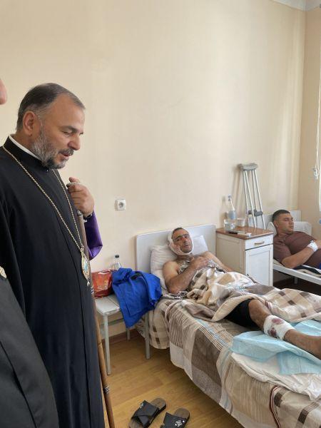 Глава Арцахской епархии епископ Вртанес Абраамян вместе с иереем Армии обороны Варданом Нерсисяном, духовным ответственным сферы здравоохранения иереем Андреасом Тавадяном 4 августа посетил Центральный госпиталь Степанакерта.