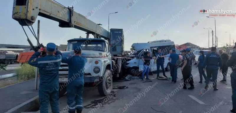 Отмечается, что в районе 06:50 автомобиль марки Mercedes Sprinter врезалась с подъемным краном, после чего — в другой. Вследствие аварии 10 человек госпитализированы в разные медучреждения Еревана.