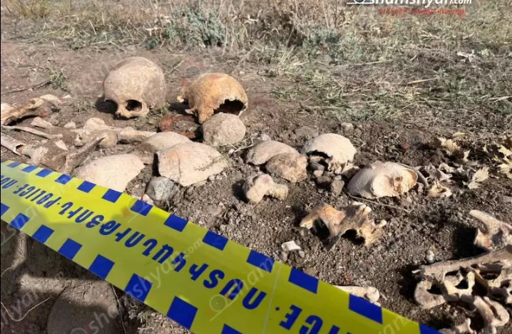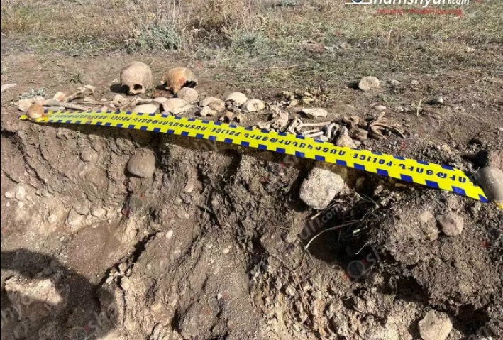Как сообщает с места происшествия фотокорреспондент Гагик Шамшян, на 112-километровом участке строящейся дороги «Север-Юг» во время земляных работ были обнаружены части человеческих тел, черепа и фрагменты костей.