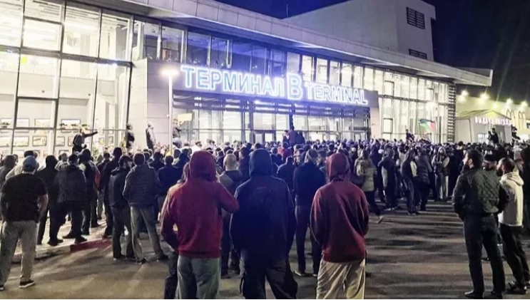 Сотни жителей Дагестана сначала собрались у аэропорта Махачкалы, там приземлился рейс из Израиля. Затем они ворвались в здание. С криками «Такбир! Аллаху Акбар!» вламываются в служебные помещения аэропорта.