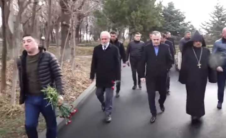 Самвел Шахраманян и ряд других бывших деятелей Арцаха посетили воинский пантеон «Ераблур» по случаю 36-летия Арцахского движения.