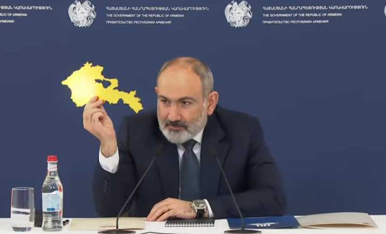 Демонстрируя карту Армении, премьер подтвердил ее де-юре признание.