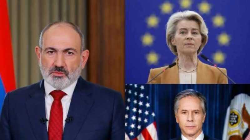 Премьер Армении Никол Пашинян обсудит с главой Еврокомиссии Урсулой фон дер Ляйен и госсекретарем США Энтони Блинкеном в Брюсселе пути трехстороннего сотрудничества, направленного на развитие Армении. Как сообщает «Арменпресс» со ссылкой на секретаря Совбеза Армении Армена Григоряна, встреча запланирована на 5 апреля.