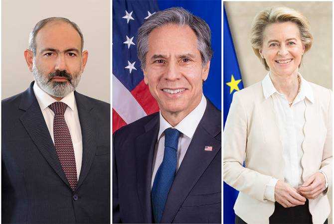 В Брюсселе проходит трехсторонняя встреча премьер-министра Армении Никола Пашиняна, председателя Европейской комиссии Урсулы фон дер Ляйен и госсекретаря США Энтони Блинкена, которая, по предварительным данным, продлится около часа.
