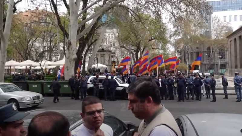 Перед зданием МИД Армении 8 апреля проходит акция протеста.