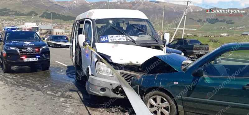 Инцидент произошeел в 12:30, когда маршрутка, следующая по маршруту Ванадзор-Ереван, столкнулась с автомобилями Volkswagen и Lada.