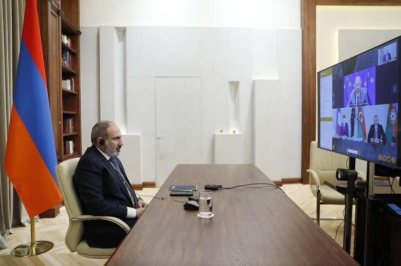 В режиме видеоконференцсвязи состоялась встреча Никола Пашиняна, Эммануэля Макрона, Шарля Мишеля и Ильхама Алиева 04.02.2022