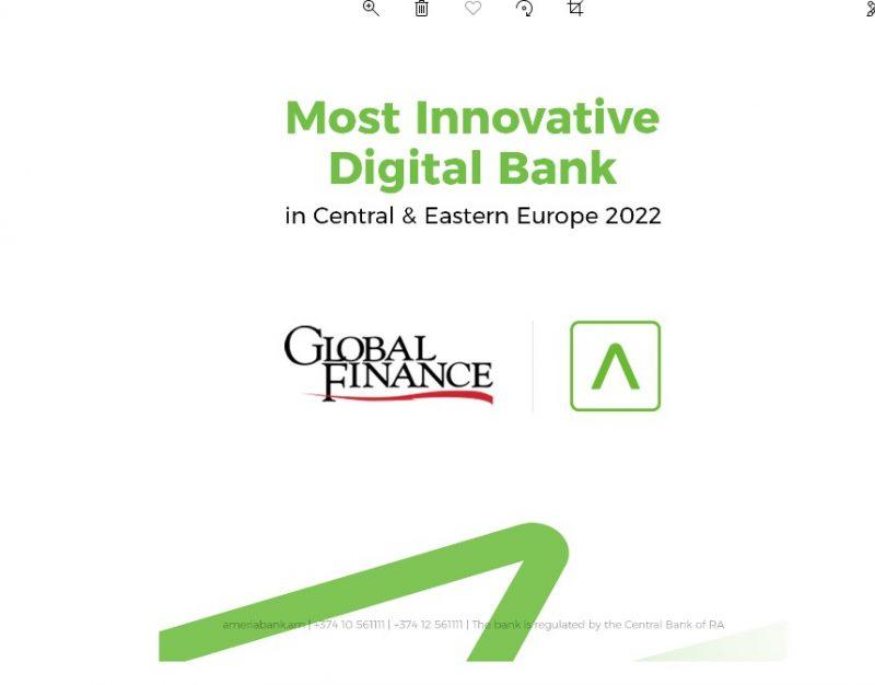 Америабанк удостоился награды «Самый инновационный цифровой банк в Центральной и Восточной Европе 2022» по версии журнала Global Finance 19.08.2022